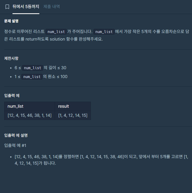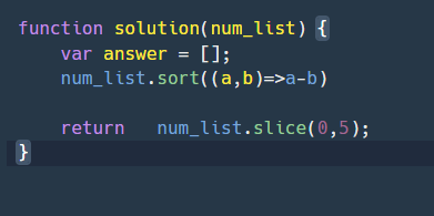 //배열을 오름차순으로 정렬해주고 앞에서 5까지 잘라준다.