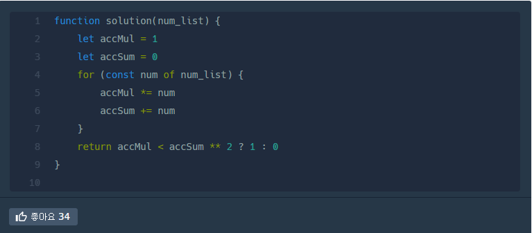 //배열 매서드 포이치 돌려서 합하고 곱 구해낸다음 비교해서 리턴