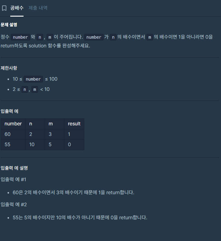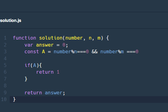 // 나머지가 없으면 number의 배수니까 그거 조건 부합하는거 조건 A에 담고 A가 true이면 1 아니면 0리턴
