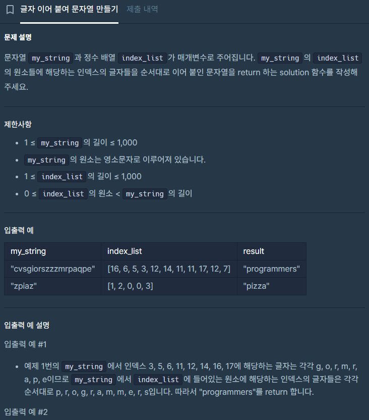 //인덱스 리스트를 포이치 돌린다. i는 인덱스값을 갖기 때문에 그 값을 해당 string에서 찾아서 계속 더해주면 끝
